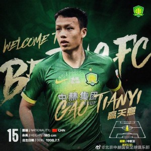 2月16日,中超北京中赫国安宣布引进江苏苏宁U23球员高天意。 国安公告写道,高天意正式加盟北京中赫国安足球俱乐部,新...